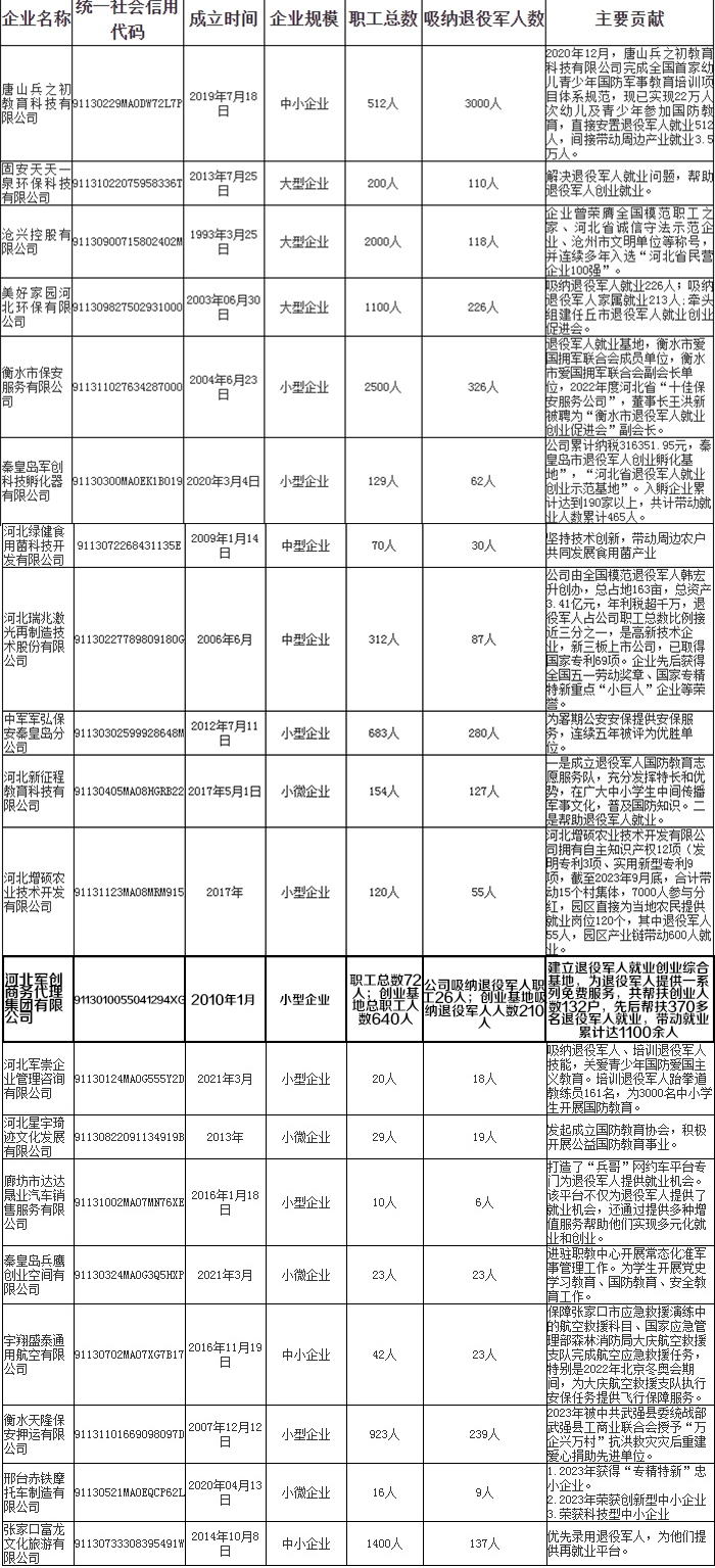 军创集团荣登2023年度河北省“全国退役军人创业带动就业光荣榜”推荐名单
