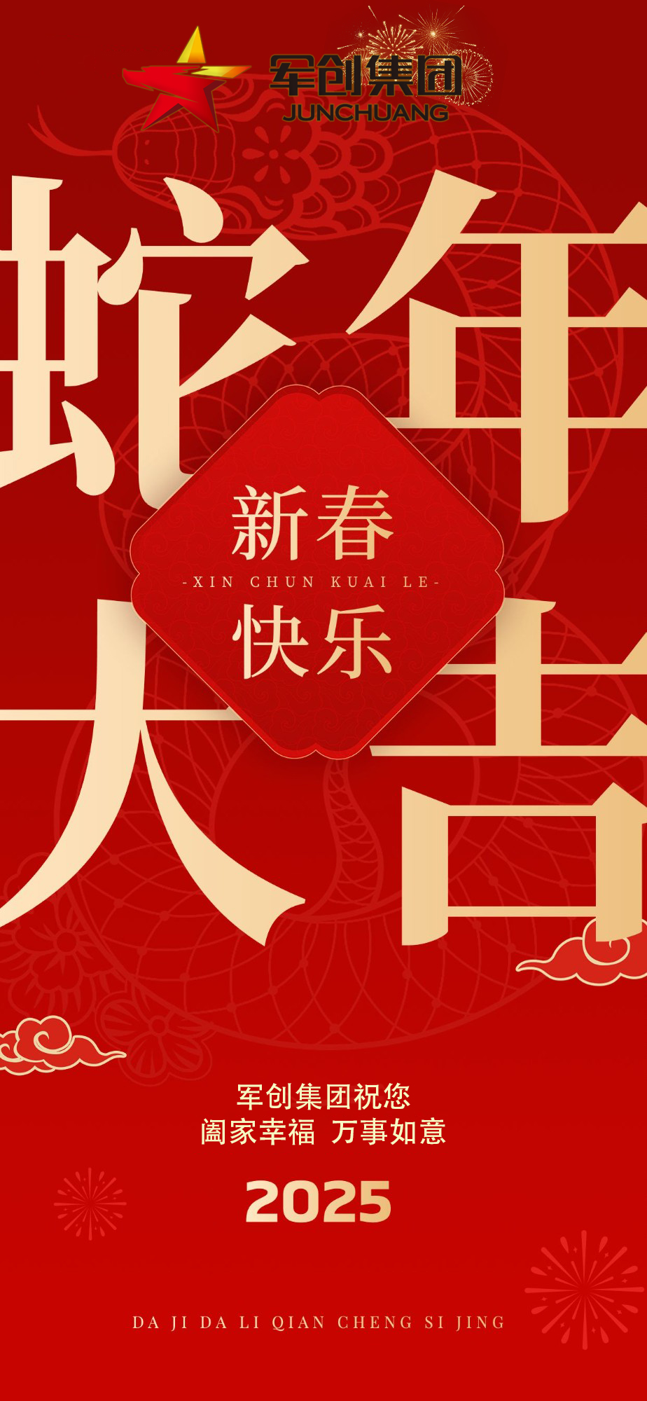瑞雪飘扬庆新年,祥龙离去瑞蛇来。在这充满希望的 2025 年,河北军创集团向大家致以最诚挚的新春祝福!